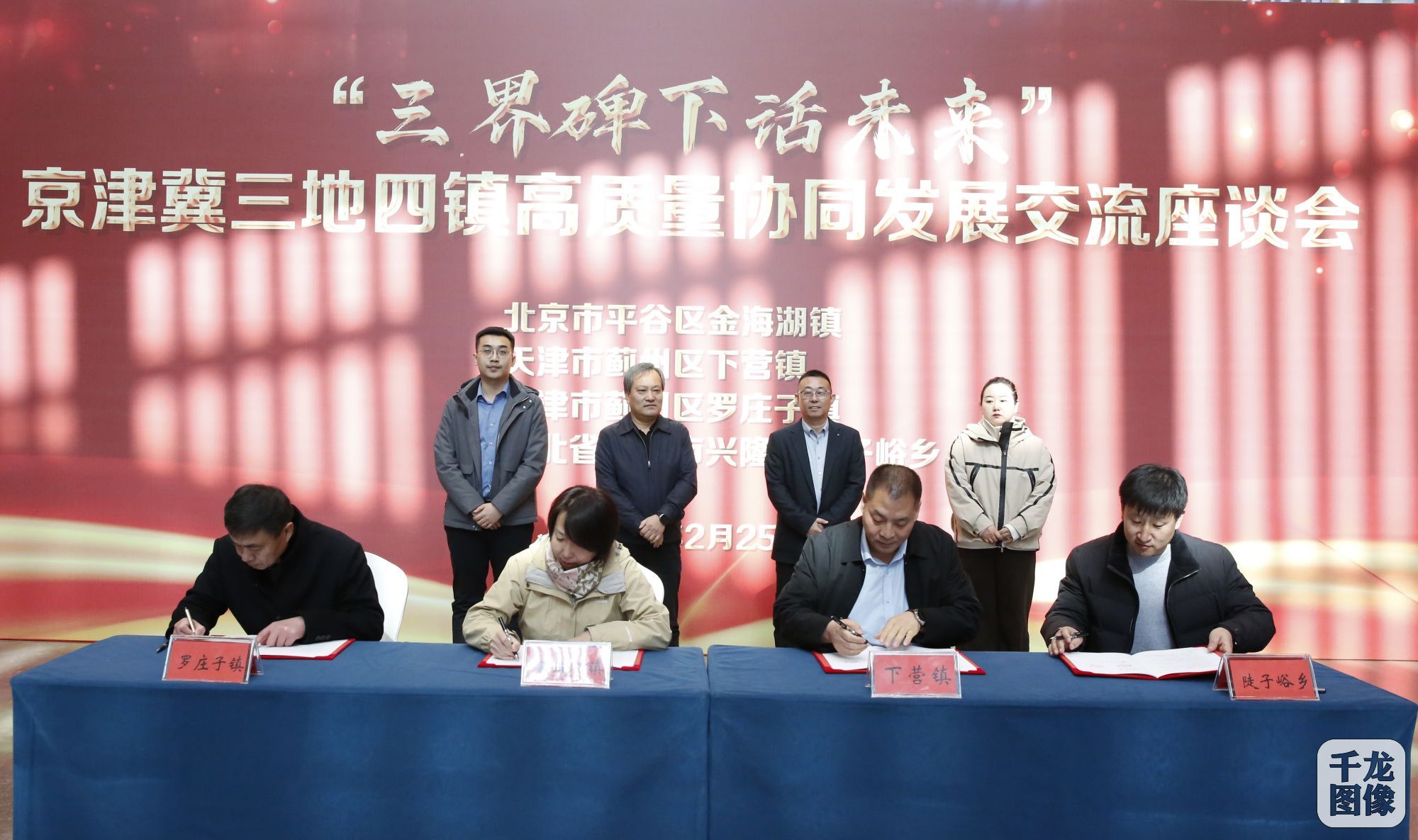 千龙网讯 在京津冀协同发展国家战略实施10周年之际,2月25日,北京市平谷区金海湖镇、天津市蓟州区下营镇、罗庄子镇,河北省承德市兴隆县陡子峪乡齐聚金海湖国际会展中心,共同召开以“三界碑下话未来”为主题的交流座谈会。会上签订了京津冀三地四镇协同发展战略合作框架协议,就发挥三地四镇资源优势、强化协同联动,继续走好新时代京津冀协同发展的未来之路达成一致意见,开启了推进高质量协同发展的新篇章。